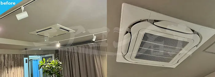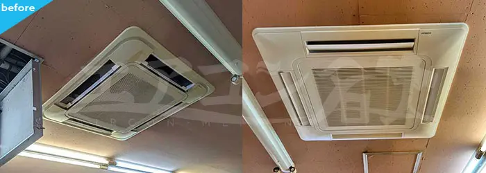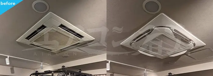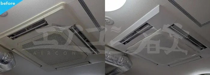 天井カセット形4方向 分解洗浄・交換工事・抗菌施工 -